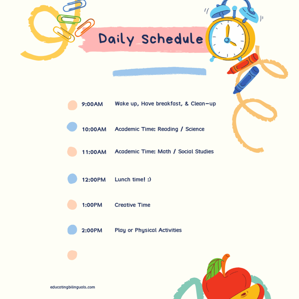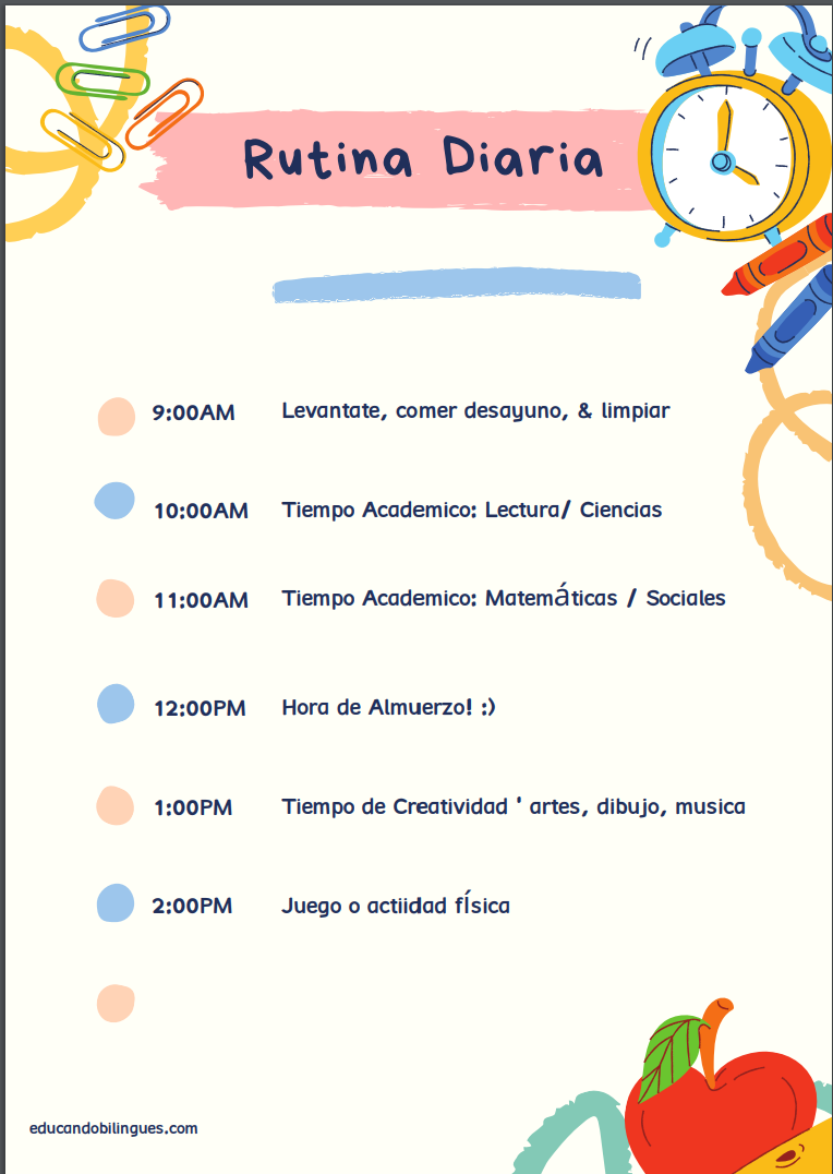 La mayoría de los artículos sobre el aprendizaje en línea discuten la idea de establecer una rutina que los estudiantes puedan seguir en casa. Los estudiantes del idioma inglés necesitan una rutina de aprendizaje más que nunca. En su mayor parte, agregar más incertidumbre a su rutina diaria puede obstaculizar su progreso de aprendizaje.