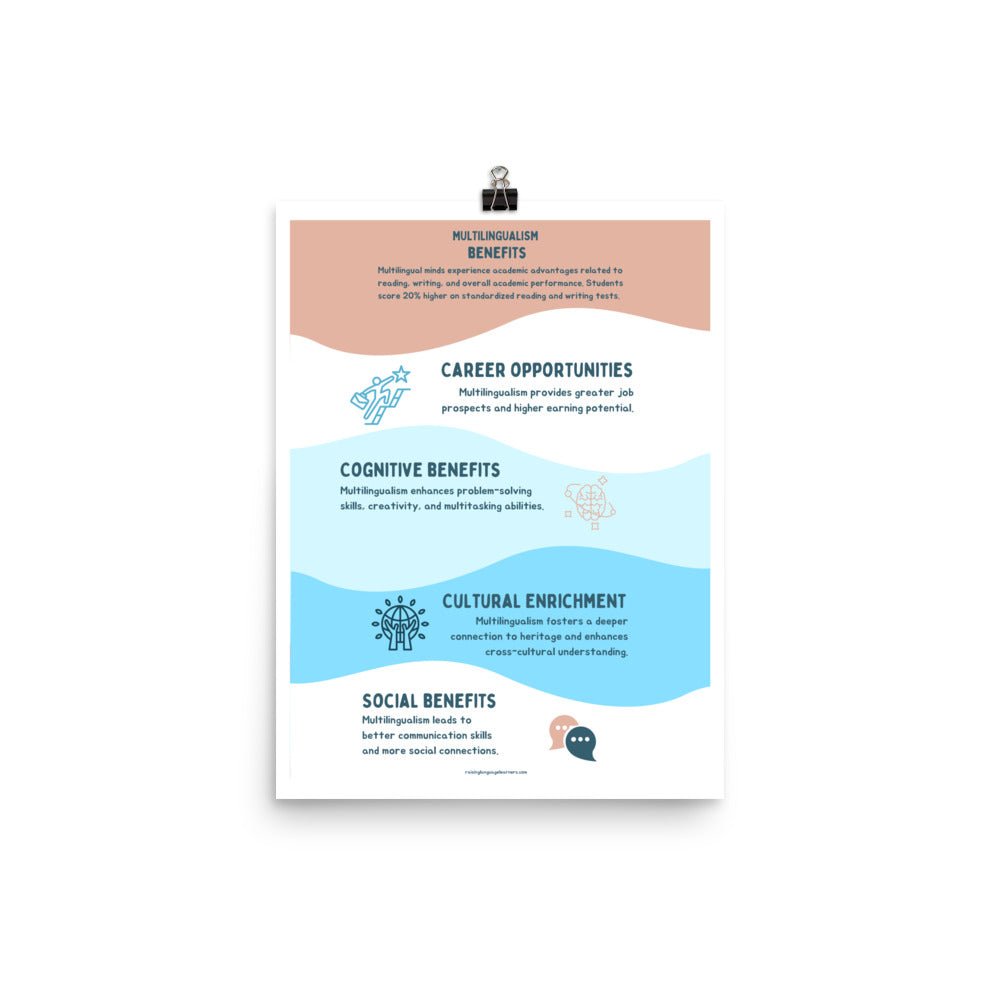 Equip your space with our “Benefits of Bilingualism” poster and watch as it sparks curiosity, motivation, and pride in language learners of all ages!
