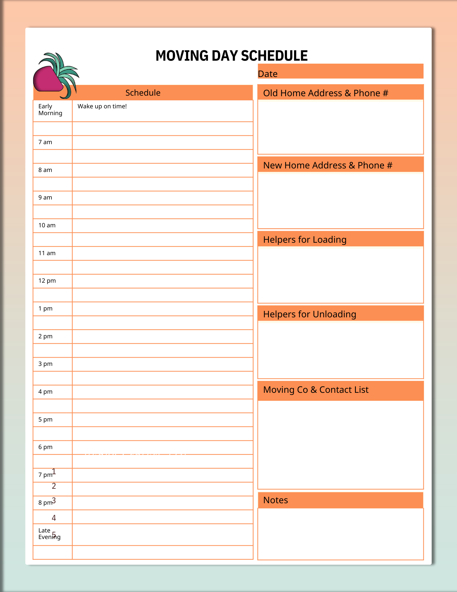 Use this digital moving planner to simplify and organize your next move. Organize and move with this step-by-step family moving planner. Track current and new school information using the School transfer form and don’t miss any information.