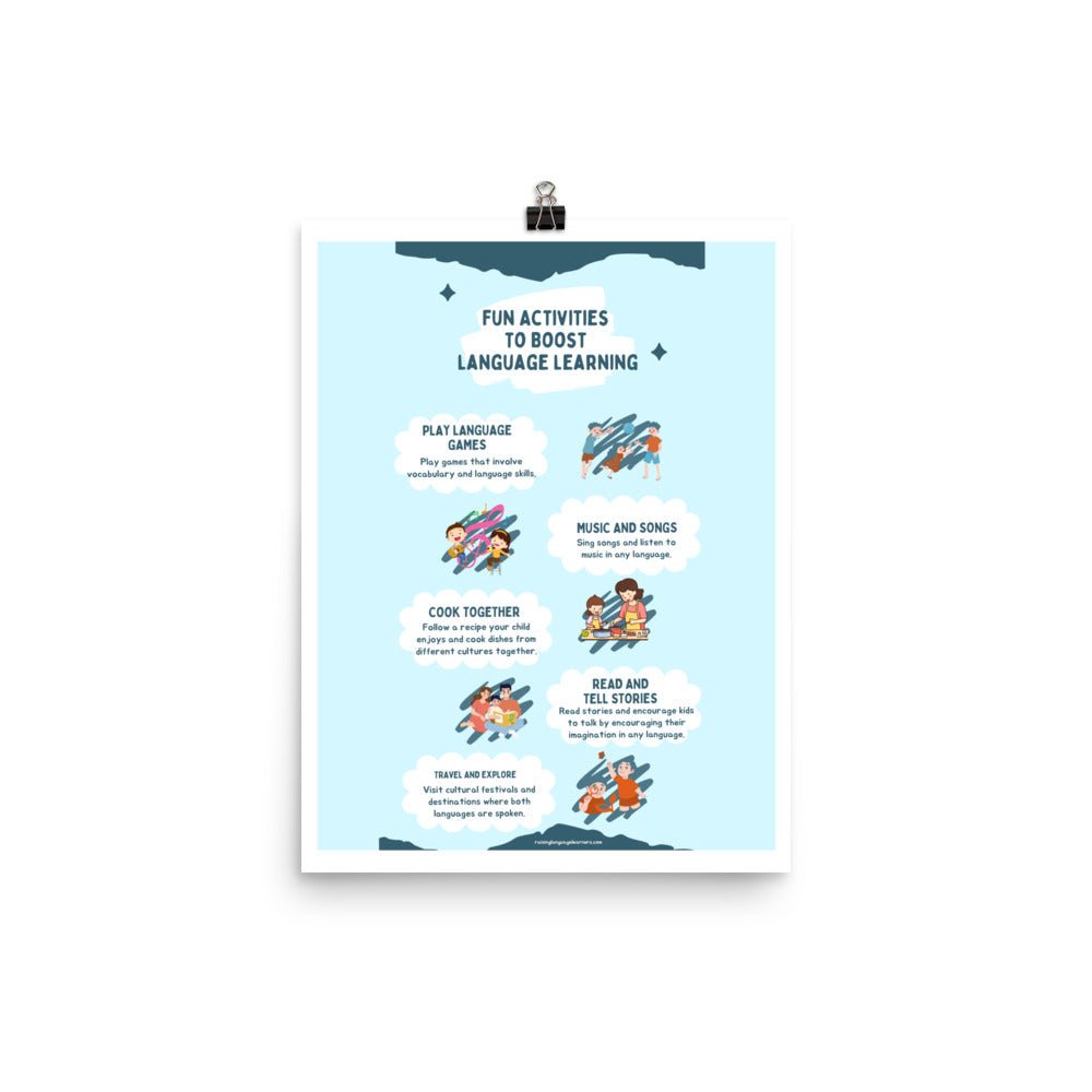 Our Fun Activities to Boost Language Learning Poster is an essential tool for any educational setting or home looking to support and enhance bilingual and multilingual language development. Start creating a fun and enriching language learning environment today!