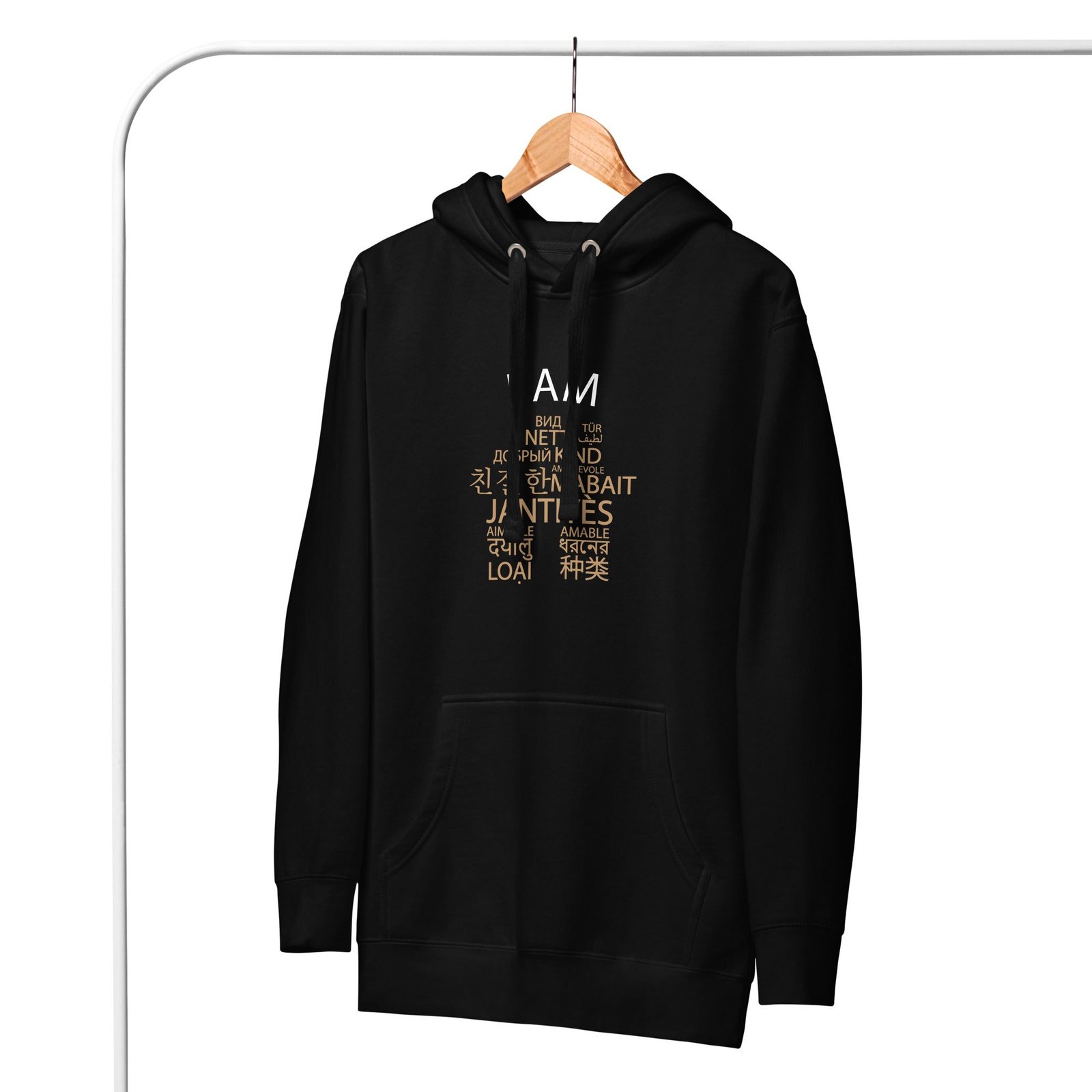 Spread kindness across languages with our charming Multilingual “I Am Kind” Heart Hoodie! Featuring the phrase “I am kind” in multiple languages encircling a heart, this hoodie serves as a daily reminder to embrace kindness and celebrate diversity.Â