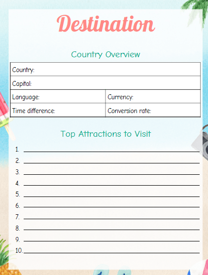 - A carry on page to use for every trip.